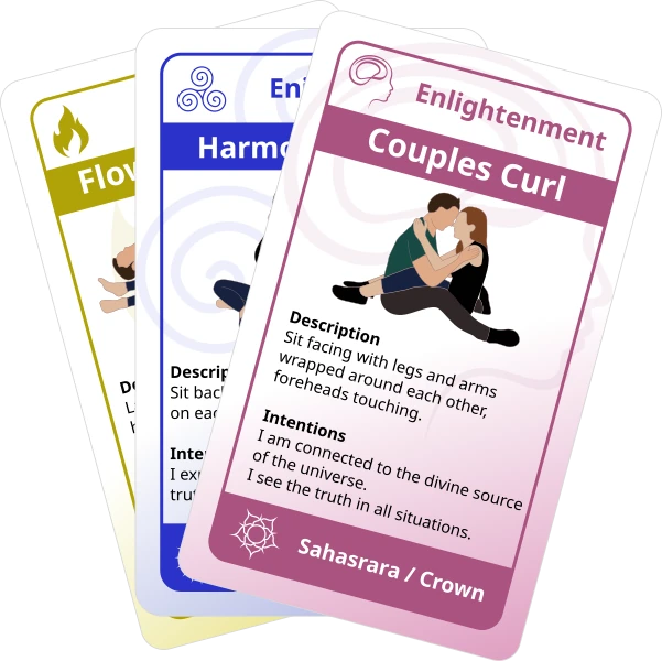Each pose is designed to foster intimacy, trust, and emotional connection through shared mindfulness practices.